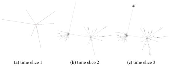 Figure 4 and Figure 5 depict the temporal evolution of two distinct communication modes, which we refer to as ‘single center divergence’ and ‘multi-center divergence’ throughout this paper. These graphical representations elucidate the progression of these modes over time with greater clarity.