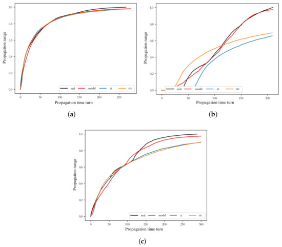 (a–c) are the comparison results with the actual information dissemination.