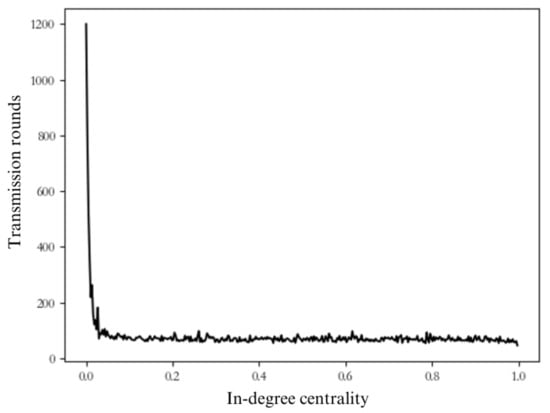 Transmission rounds required for entire network using nodes with different degree centrality.