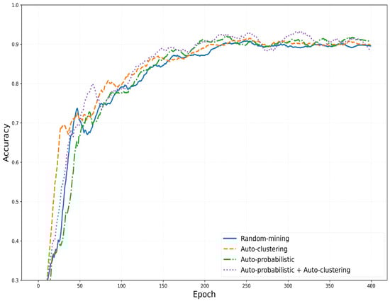 As a result, the auto-probabilistic mining (APM) method provides a more flexible approach. The network gains the capacity to dynamically adapt and prioritize classes according to their significance for learning by automatically computing the probabilities for each class during training. This makes it possible for the network to determine which classes need more attention and to produce them more frequently, which improves recognition performance overall and optimizes the training process. Therefore, the APM method offers a promising way to enhance neural network training efficiency.