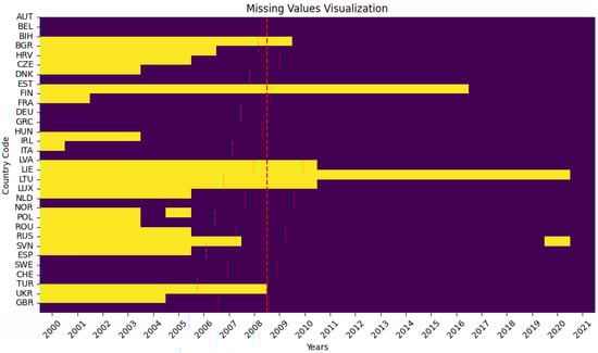 Upon initial inspection, it is evident that the dataset contains some missing values, particularly for certain countries and years (Figure 2).