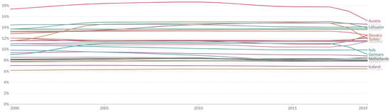 The first dataset comprises information on the per capita consumption of organic foods across multiple European countries spanning the years 2000 to 2021. We formatted it in a tabular form, in which each row corresponds to a specific country, while the columns represent individual years. The consumption values are measured in [EUR/person] units, indicating the per capita consumption levels for organic foods.
