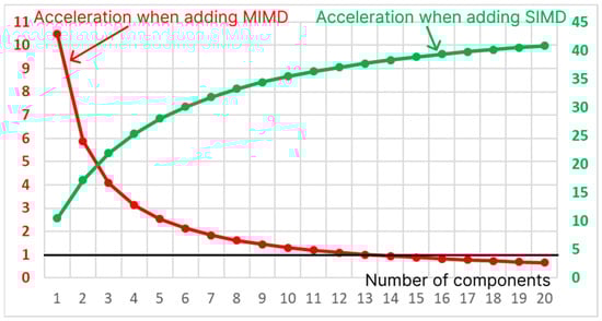 However, the availability of heuristic information is essential for discrete ACO, without which the algorithm stagnates. This requirement does not allow us to propose universal modifications. ACOR does not use heuristic information but is often limited to the class of continuous optimization problems and is not suitable for discrete or mixed problems. It should also be noted that parallel modifications of ACO on CUDA and OpenMP investigate only discrete ACO on the TSP, QAP, and ACO-LSTM problem. In the proposed problems, the search time for the function value is commensurate (small) with the time it takes for the ant agent to find the path. No studies have been conducted on modifications of the method with intermediate storage of information to speed up computations and the use of hybrid SIMD/MIMD computers. To use strict SIMD calculators, a matrix formalization of the ACO method with the allocation of individual MIMD stages is necessary. It should also be noted that most works on parallel ACO are based on parallel multithreaded and distributed computations and computations on GPU CUDA cores and do not take into account the widespread development of SIMD cores of CPUs.