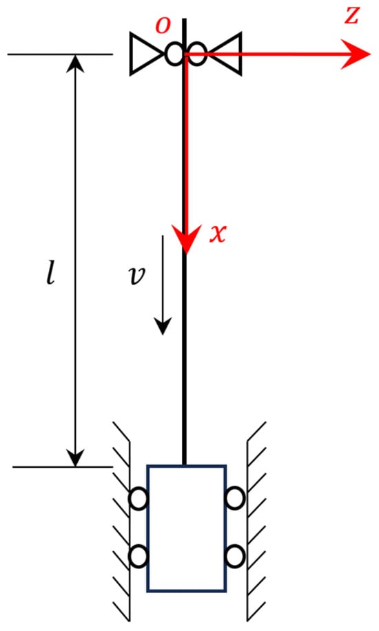In past decades, many scholars have conducted research on the linear dynamic systems of elevator cables. Zhu and Teppo [4] developed a scale model of an elevator to study the linear lateral dynamic response of elevator cables. Sandilo and van Horssen [5,6] studied the lateral vibration of elevator cables and analyzed the cables’ vibrations with linearly varying length and harmonically varying length, as well as the autoresonances of a deploying elevator cable. Wang and van Horssen [7] found that external disturbances imposed on the boundary can cause linear large-amplitude vibrations of an elevator cable in a flexible hoisting system and may induce damage to the operation of the hoisting system, including significant deformations and dynamic stresses in both machinery and structures, and may even lead to accidents. Xu et al. [8] modelled the elevator cable as a cantilever beam, investigated the tension–torsion coupling vibration of the cables, and introduced external disturbance into the established model to evaluate the corresponding adverse impact on ride comfort, eccentricity of traction wheel, and unevenness of guide rail.