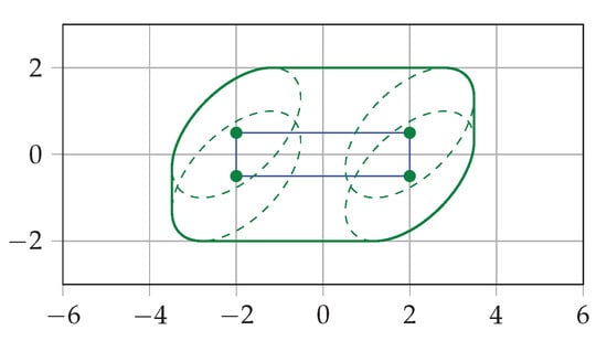 - Halder, A. On the Parameterized Computation of Minimum Volume Outer Ellipsoid of Minkowski Sum of Ellipsoids. In Proceedings of the 2018 IEEE Conference on Decision and Control (CDC), Miami Beach, FL, USA, 17–19 December 2018; pp. 4040–4045. [Google Scholar] [CrossRef]