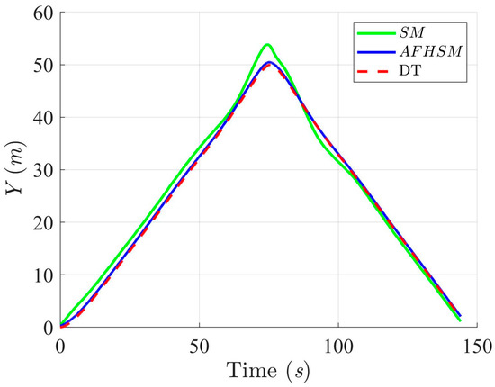 Trajectory-tracking performance of the DT along the Y-axis with SM and AFHSM control methods in scenario 2.