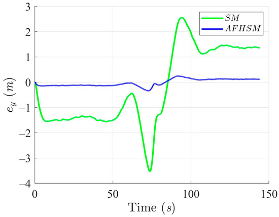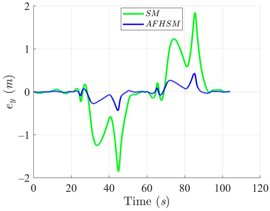 Y-axis trajectory-tracking errors using SM and AFHSM control methods in scenario 2.