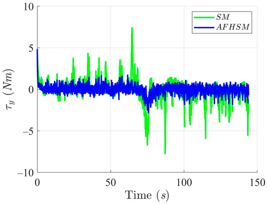 Y-axis trajectory-tracking torques with SM and AFHSM control methods in scenario 2.