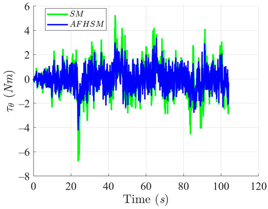 Moreover, Figure 20, Figure 21 and Figure 22 show the control torques applied by both methods. The AFHSM controller produces smoother and more energy-efficient torque profiles, indicating not only improved tracking precision but also a reduced actuator workload. This aspect is critical for AMR platforms where energy efficiency directly influences mission duration and system reliability.
