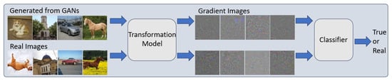 Deepfake detection Using gradient images. The gradient images are generated using a conversion model, which is trained on both real images and images generated by GANs. After training, the classifier is able to infer whether a given gradient image is real or fake.