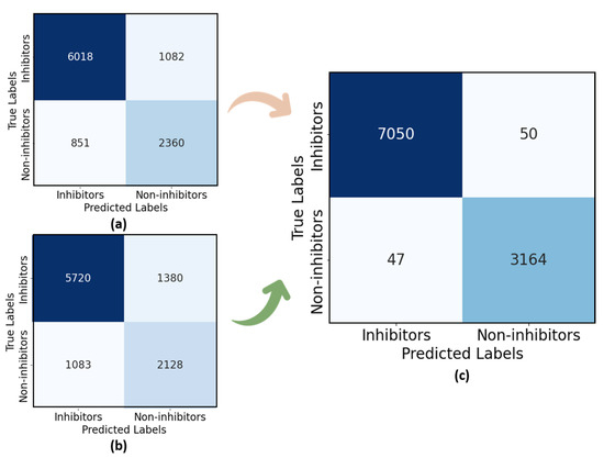The verification and validation phase was conducted using data on the inhibition of human CYP450 isozymes 1A2, 2C9, 2C19, 2D6, and 3A4 collected from the ChEMBL database. The half-maximal inhibitory concentration (IC50) values, “standard relation”, and “percentage of inhibition” were used to categorize ChEMBL substances as inhibitors or non-inhibitors. Each compound’s chemical structures, mostly the SMILES, were extracted. To achieve data consistency and correctness, different processes were carried out. First, the SMILES notation was checked for syntactic and semantic problems. Following that, Canonical SMILES were produced for every molecule. Using the RDKIT Python (v2024) library [31], we then carried out a similar filtering process as mentioned by Plonka et al. [25]. The datasets obtained from ChEMBL were combined uniquely for each of the five CYP450 (1A2, 2D6, 2C9, 2C19, and 3A4). Due to their tendency to have similar molecular descriptor values, compounds with identical SMILES were regarded as duplicates and deleted. By following these procedures, a precise and dependable dataset was produced, offering a strong basis for further study and investigation. Table 3 presents an elaborate synopsis of the data split. Compounds that were present in the PubChem dataset were removed to ensure that all drugs used for the validation and verification phase were not part of the training set. As a result, the size of the dataset used for this case study was 8752.