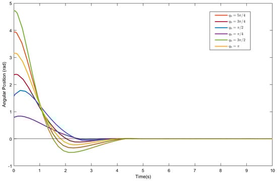 Thus, it follows from Theorem 2, with , , , , , and , that the zero solution of the closed-loop system (20)–(22) is globally fixed-time stable with a settling time bound s.