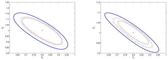 where is a consistent plug-in estimator of , and denotes the quantile of the chi-squared distribution with p degrees of freedom. Theorem 2 (2) characterizes the ELLRFs, yielding the EL confidence region