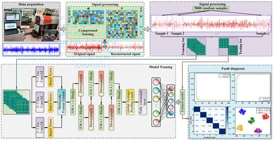 The flowchart of gear fault diagnosis system based on the CS-LAMRNet model.