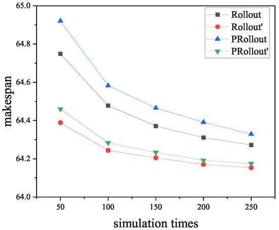 The limitation of the proposed PRollout’ algorithm lies in the solution quality and computational efficiency for large-scale problem instances. On the one hand, the solution quality of the proposed PRollout’ algorithm depends on rule-based simulation, which will deteriorate as the problem size increases. On the other hand, the PRollout’ algorithm enumerates all feasible actions in each state. When the problem size increases, the action size will also become very large, and it may even be impossible to fully enumerate. Although the CRN technique significantly improves its computational efficiency, it still requires a considerable amount of time. In summary, our approach is mainly applicable to medium-sized problems, which covers most practical problems.