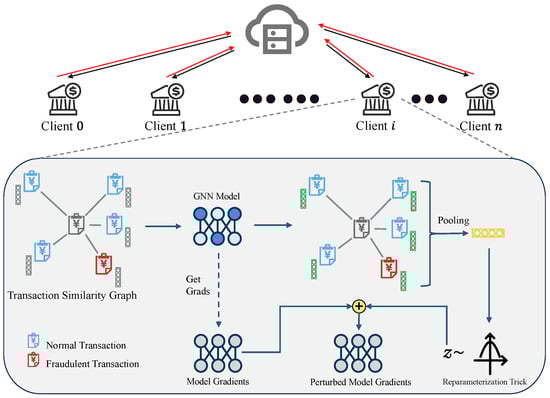 In this section, we introduce FinGraphFL, a federated learning framework custom-designed for detecting credit card transaction fraud within financial institutions (as shown in Figure 1). It specifically addresses the unique challenges faced by small to medium-sized financial entities. Our approach integrates Graph Attention Networks (GATs) and differential privacy techniques to ensure the privacy of these institutions while boosting the framework’s fraud detection capabilities. We utilize transaction similarity graphs along with GATs to effectively capture and analyze complex transactional relationships. Moreover, to accurately represent the distribution of customer data and prevent data leakage, we devise an innovative differential privacy method using graph embeddings, significantly enhancing the model’s ability to safeguard user data.