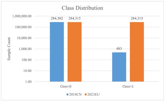 Class distribution comparison in 2018CN and 2023EU datasets.
