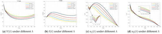The design of the cost function (4) is highly innovative, as the parameter β is introduced to characterize the severity of malware attacks. In the traditional cost function of reference [15,51], the weights of various costs are fixed uniformly. In contrast, this design can more flexibly and accurately reflect the cost variations in different attack scenarios. By adjusting the value of β, the weight of the impact of the number of infected nodes on the total cost can be dynamically adjusted according to the actual situation. This enables the control strategy to optimize costs more rationally when facing malware attacks of different severity levels, thus enhancing the practicality and adaptability of the model.