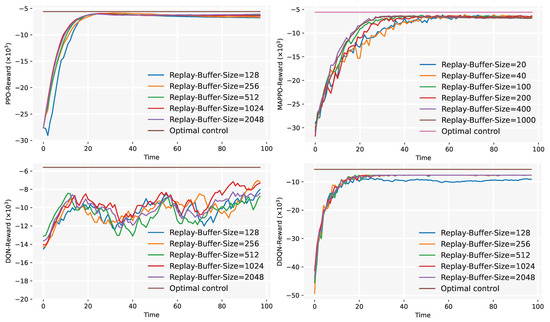 Training effect of PPO, MAPPO, DQN, and DDQN under different experience buffer sizes. .