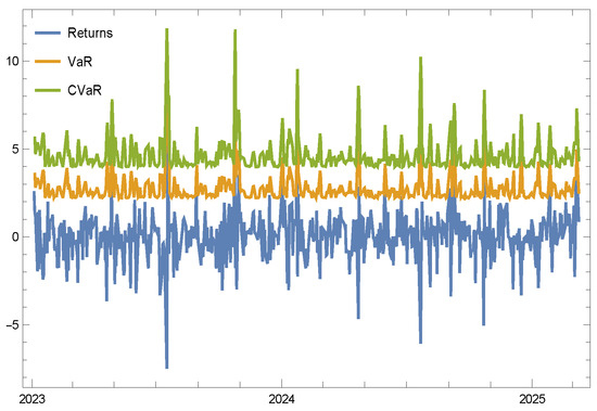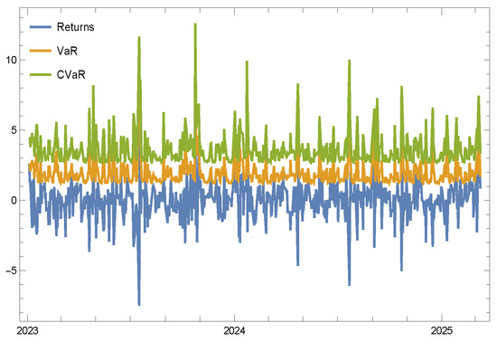 8]. It allows for the straightforward computation of VaR and ES using closed-form solutions. However, it fails to capture heavy tails and skewness, leading to an underestimation of extreme losses. The Student’s