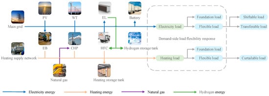 37]. DR works by setting reasonable electricity prices, encouraging users to voluntarily adjust their electricity and heating behaviors. By incorporating energy storage devices, it achieves load peak shaving and valley filling, which not only saves energy costs for users but also alleviates the peak load pressure of IESs to some extent, reduces wind curtailment rates, and thus increases the utilization of wind power.
