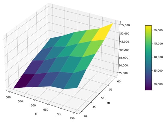 Based on the above data, we generate a 3D plane graph to visualize the proportional growth of inspection times relative to two variables: the number of inspection items and the number of parts, shown in Figure 1. The total inspection times are obtained by setting specific ranges for the number of parts and the number of inspection items. It is evident that the number of inspections is linearly related to both the number of inspection items and the number of parts.