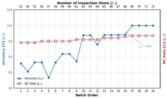 Accuracy improvement with increasing inspection items under fixed batch size.