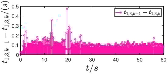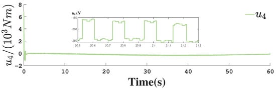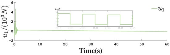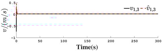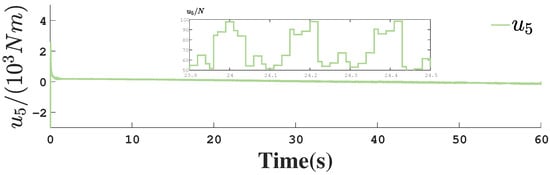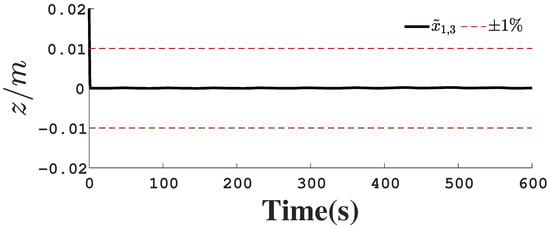 Figure 1, Figure 2, Figure 3, Figure 4, Figure 5, Figure 6, Figure 7, Figure 8, Figure 9, Figure 10, Figure 11, Figure 12, Figure 13, Figure 14, Figure 15, Figure 16, Figure 17, Figure 18, Figure 19, Figure 20, Figure 21, Figure 22, Figure 23, Figure 24, Figure 25, Figure 26, Figure 27, Figure 28 and Figure 29 confirm the boundedness of all system signals. Specifically, Figure 1 demonstrates close convergence between the AUV’s actual trajectory and the reference path, validating the tracking performance of the proposed controller. Figure 2, Figure 3, Figure 4, Figure 5 and Figure 6 further reveal that the state 1 tracking error remains confined within a 1% error margin, while Figure 7, Figure 8, Figure 9, Figure 10 and Figure 11 corroborate effective velocity tracking. The actuator inputs, depicted in Figure 12, Figure 13, Figure 14, Figure 15 and Figure 16, exhibit smooth and physically realizable profiles upon system stabilization. The observer’s efficacy is evidenced in Figure 17, Figure 18, Figure 19, Figure 20, Figure 21, Figure 22, Figure 23 and Figure 24. Figure 17, Figure 18, Figure 19, Figure 20 and Figure 21 show rapid convergence of position/attitude estimation errors to a near-zero residual band, whereas Figure 22, Figure 23 and Figure 24 confirm the accurate reconstruction of unmeasurable linear and angular velocities. The event-triggering mechanism (ETM) performance is quantified in Figure 30 and Table 1. Compared to time-triggered schemes (TTM), the ETM reduces trigger instances by 75–82% across actuators (e.g., 5701 triggers for Actuator 1 versus TTM’s fixed-interval triggering), significantly alleviating computational and communication loads. Crucially, Figure 25, Figure 26, Figure 27, Figure 28 and Figure 29 verify the absence of Zeno behavior. These results collectively substantiate the control scheme’s effectiveness in achieving precise tracking, robust observation, and resource-efficient implementation.