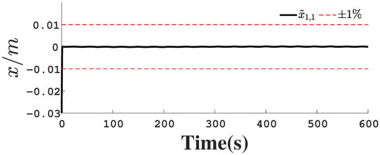 According to Theorem 1, the estimation error of the observer converges in fixed time when , so that we have