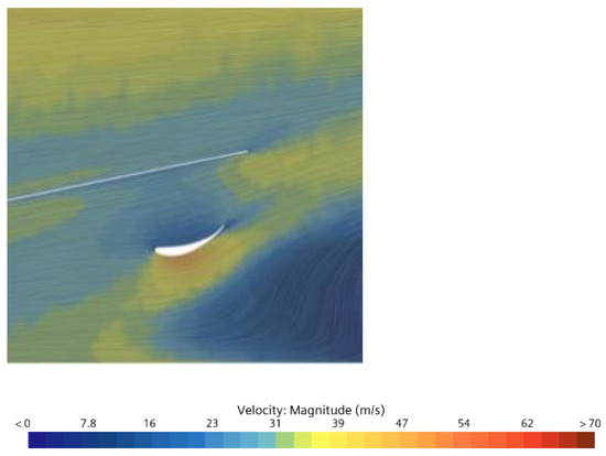 The results demonstrate that increasing the height of the end-flap substantially improves downforce but also leads to a significant rise in drag force. Specifically, downforce increments of 21.83%, 20.53%, and 20.93% were observed for Case Studies 2, 2.3, and 2.3, respectively, with corresponding drag increases of 77.4%, 75.34%, and 72% compared to the baseline model, as shown in Table 5. Additionally, the flaps alone generated over 80 N of downforce, as listed in Table 6. The drag has increased but there is a possibility to explore this configuration in the context of considering its interaction with other vehicle components. The study showed that low velocities were observed on the upper section of the diffuser, while higher velocities and lower pressure values were noted on the suction side of the airfoil and diffuser, contributing to the generation of downforce, as illustrated in Figure 14. The low-pressure region on the flap’s suction side plays a crucial role in preventing flow detachment, thereby enhancing the undertray’s downforce performance. Additionally, the presence of the flap at the diffuser’s expansion aids in re-energizing the flow due to the suction effect created by the flap.
