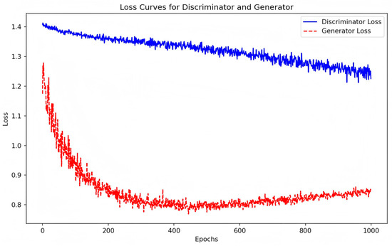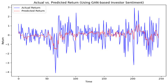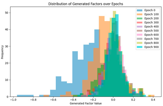 In this test, the GANs need to compute forward propagation and backpropagation once for both the generator and discriminator within each epoch. Assuming that the dimension of our input data is , and we have trained epochs, the total computational complexity of each epoch is , which is the computational complexity of each iteration in the training process. The total training time is 1.53 s. However, the GAN method in this experiment has some limitations. Firstly, the GANs in this study use a single potential dimension to represent investor sentiment. Nevertheless, financial market sentiment is complex, and multiple dimensions may be required to adequately describe investor mood swings and market psychology. If the potential dimension is too small, it may not capture all the useful sentiment signals; if it is too large, it may introduce noise or cause excessive model complexity. Second, for the agents that need to be downgraded in this study, we selected appropriate hyper-parameters to enable effective cooperation between the generator and the discriminator, so that better quality sentiment signals can be extracted. However, if this method is extended without improvement to deal with complex financial data problems, the gaming process between generators and discriminators may lead to unstable training, which makes the extracted correlation signals distorted. Meanwhile, GANs are highly prone to overfitting the training data when dealing with correlated data. Especially in financial data, the market data have strong time dependence and seasonal fluctuations, and overfitting may lead to an inconsistent performance of sentiment signals in different time periods. Finally, financial market sentiment is determined not only by factors such as historical prices and technical indicators, but is also influenced by external factors such as macroeconomics, policies, international events, and so on. The GAN model may not be able to adequately capture the impact of these factors on sentiment, resulting in the extracted sentiment signals failing to reflect the complete market psychology.