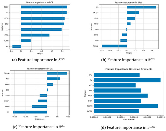 SGAN to effectively capture the complex relationships among sentiment proxy variables. Financial markets are inherently nonlinear systems, and the relationship between investor sentiment and market behavior often exhibits complex nonlinear patterns. Traditional methods such as PCA and PLS are mainly based on linear assumptions, and it is difficult for them to capture this complexity. GANs, on the other hand, are able to automatically learn the nonlinear dependencies between sentiment agents through multilayer neural networks and adversarial training without the need to pre-specify the form of the parameters. The feature importance analysis in