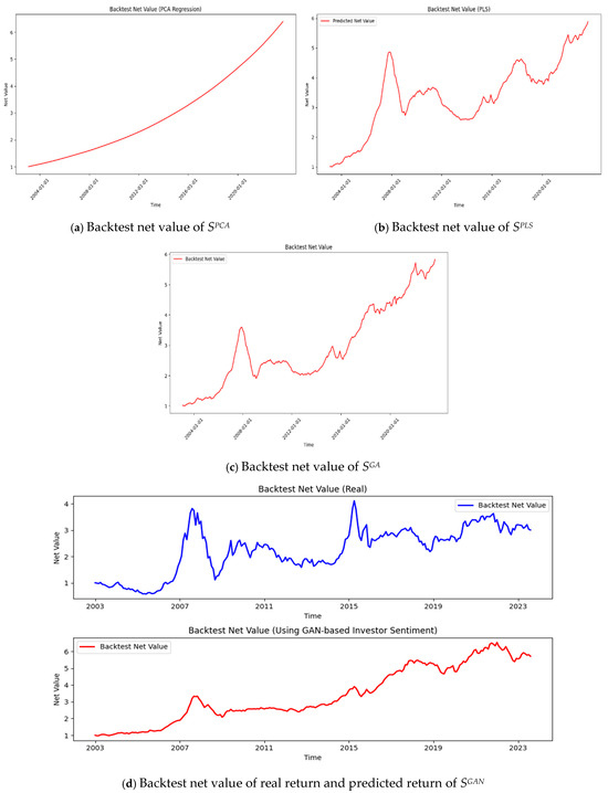 In summary, this study innovatively applies GANs to investor sentiment modeling, breaking through the limitations of traditional linear downscaling methods and providing a new research paradigm for financial behavior. The unique ability of GANs to capture the nonlinear features of sentiment time series provides a new perspective to understand how market sentiment drives price fluctuations, and this methodological innovation not only improves the prediction accuracy, but also provides a theoretical basis for constructing more effective investment strategies. Moreover, we find that the lagged effects and asymmetric responses of sentiment indicators play a crucial part in the performance of GAN models. GANs are able to capture these lagged sentiment fluctuations efficiently through adversarial training to improve the predictive power of sentiment indicators, and at the same time deal with such asymmetric effects efficiently, so that the sentiment indicators can accurately reflect the way the market responds to different changes in sentiment. This enables GANs to outperform traditional approaches to sentiment analysis, providing more stable and predictive sentiment signals across a wide range of economic conditions, thereby improving the accuracy of the predictions of future market returns. Future research could be directed toward a comprehensive empirical investigation to select additional sentiment proxies and apply a GAN to develop more robust investor sentiment indicators. Additionally, it is of interest to adopt increasingly advanced dimensionality reduction methods to explore a broader range of stock markets.