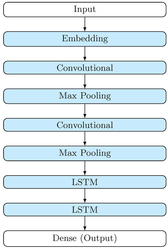 Hence, as a density estimator, we employed a DNN with a multilayer architecture characterized by nine layers, arranged in the following sequence: an input layer, to which the two-price input is fed; an initial embedding layer; two smoothing stacks composed of a convolutional layer and a max pooling layer; two Long Short-Term Memory (LSTM) layers (acting along the temporal dimension of the input vectors only), and one dense layers for output. Notice that in this way, the LSTMs run along the n steps of each data sample and not along the whole training dynamics. The DNN architecture is depicted in Figure 2.