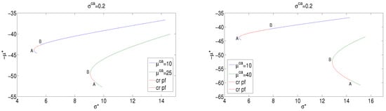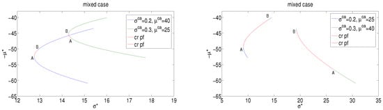 Dispatchable systemic mean-standard deviation frontiers . Left panel: () and () scenarios. Right panel: () and () scenarios. ‘cr pf’ stands for critical portfolios.