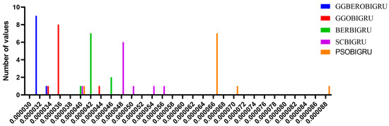 Figure 20 shows the bar chart representing the mean error of BIGRU models based on different algorithms. Once again, the average error of GGBERO-BIGRU remains the smallest on average, thus proving its accuracy and competency. In this chart, it is seen that the use of the combination of optimization techniques leads to high increases in the model’s efficiency, which makes the combined strategy more suitable for providing solutions in complicated modeling.