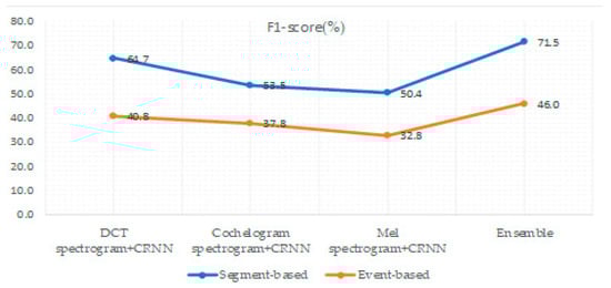 Additionally, our research focuses on detecting environmental sounds from hazardous events to ensure public safety. Building a dataset of hazardous sounds (harassment, screams, quarrels, etc.) is a very time-consuming process, making it difficult to develop high-accuracy recognition models. In future work, the training dataset will be expanded to increase the accuracy of the model. Finally, building on this study’s use of ensemble methods, which contributed to the current 46% event-based F1 score, further optimization could be achieved by diversifying the ensemble’s constituent models and refining post-processing approaches, such as temporal smoothing, to reduce prediction errors.
