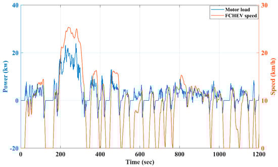 The C2000 LaunchXL-F28379D DSP board and the Matlab/Simulink environment were used to make a co-simulation model and test and confirm how well each strategy worked, offering a safe and cost-effective way to refine control algorithms. While PIL allows testing on real DSP hardware with virtual power components, it cannot fully capture real-world complexities. Sim power system elements were used to represent all of the components, including converters and sources. We evaluated the performance of the EMS under investigation on the Driving Cycle FTP-75. Figure 5 illustrates the motor power and speed profiles of both FTP-75s.