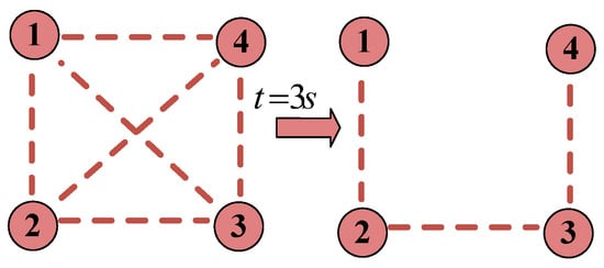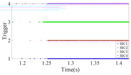Note that the parallel BIC under the proposed fixed-time event-trigger method is robust to communication link failures since the communication environment is open. Therefore, the new case is designed. In this case, all parameters are the same as in Case 1. At s, the communication between BIC1 and BIC4 breaks, and the communication topology changes, as presented in Figure 7.