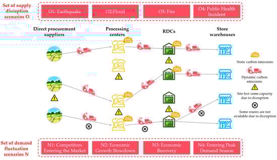 Ran, H.; He, D.; Tang, H. Network Optimization of Fresh Products Cold Chain Considering Supply Disruption and Demand Fluctuation Under the Dual-Carbon Policy. Mathematics 2025, 13, 1539. https://doi.org/10.3390/math13091539