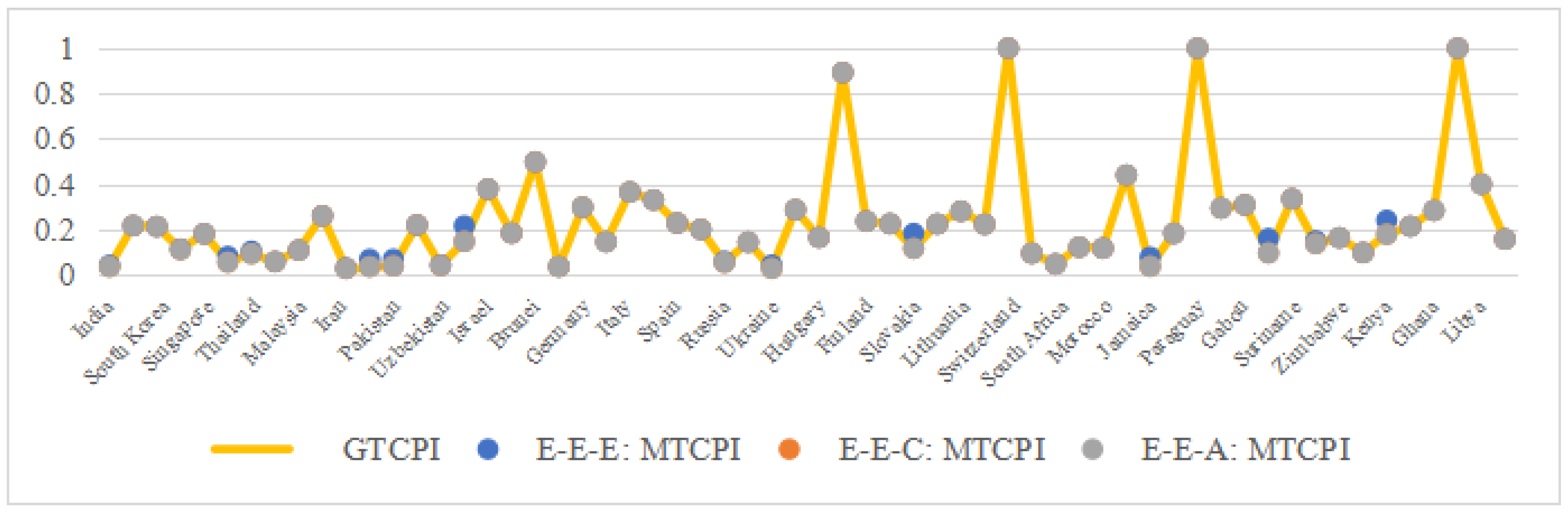 - Europe’s secondary sector MTCPI under E-E-E () excludes ’s path dependency, whereas E-E-C aligns with policy-driven benchmarks ().