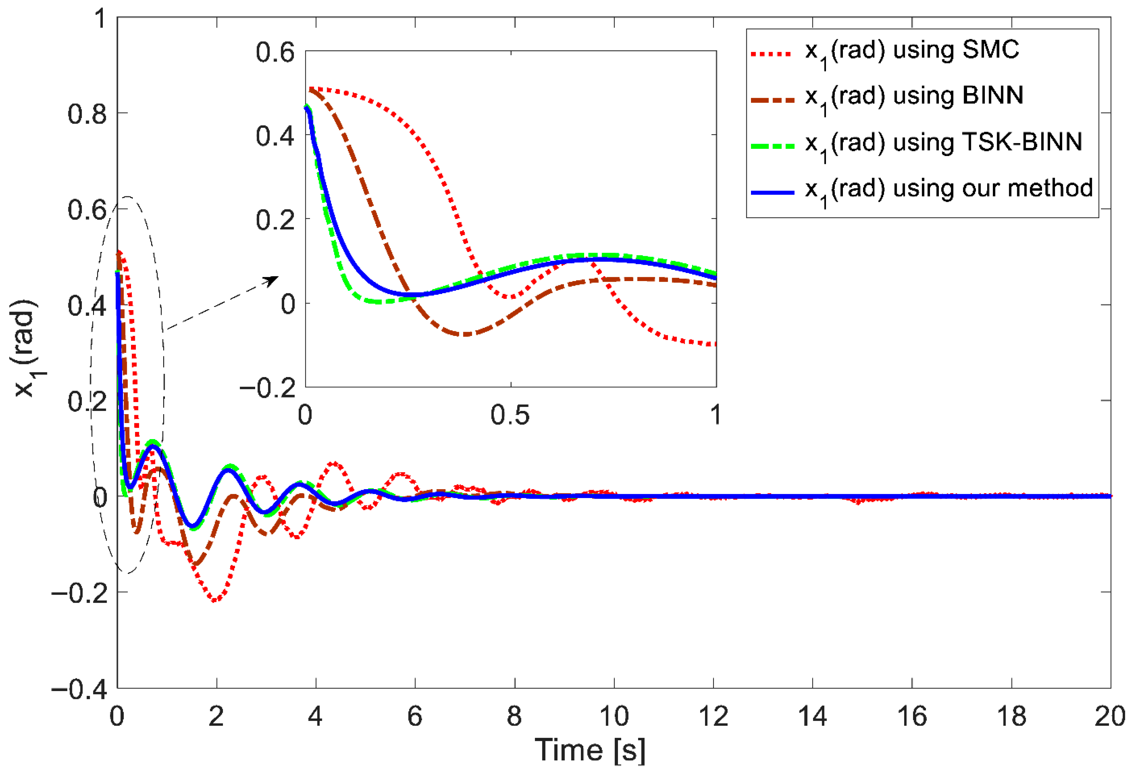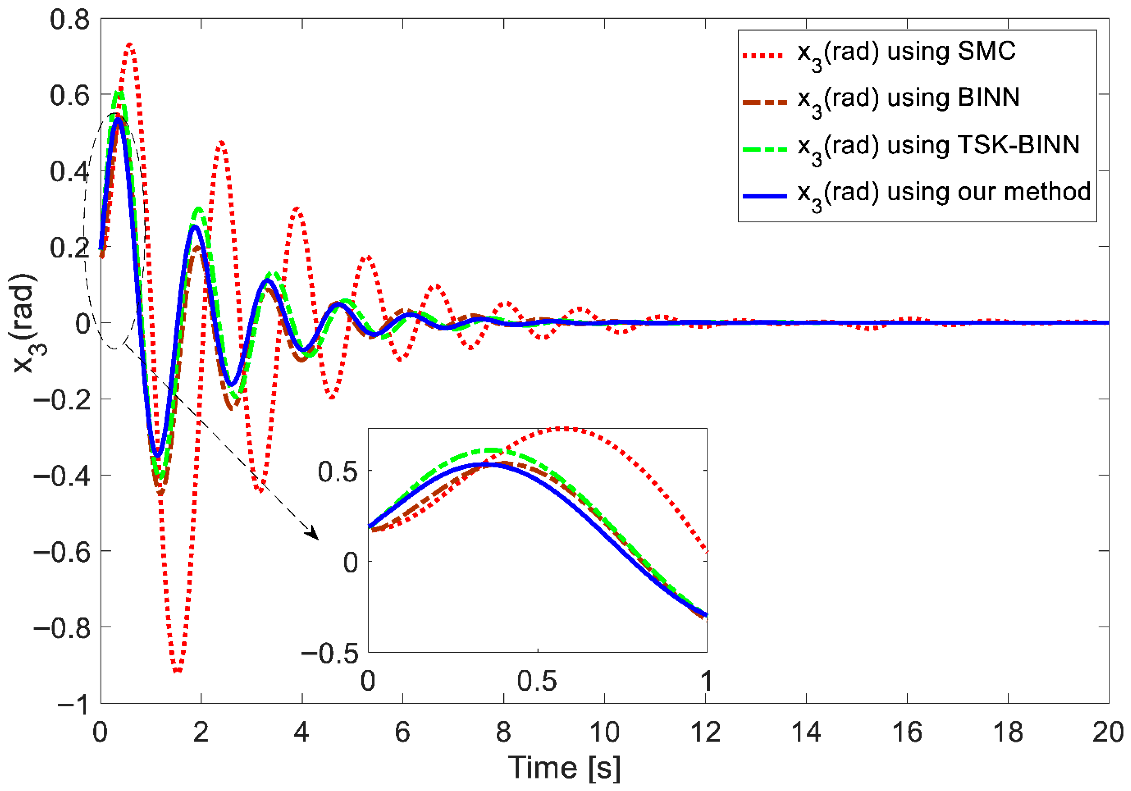 In addition, to benchmark the proposed controller against recent approaches, the root mean square error (RMSE) was computed for each method, and the results are summarized in