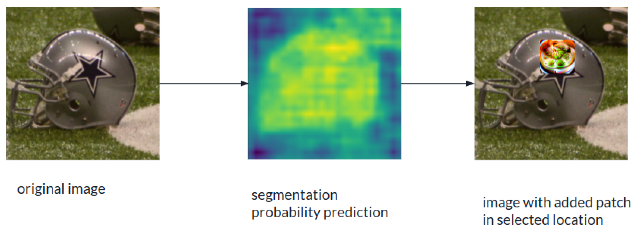 - Segmentation-guided placement. A fast, zero-gradient heuristic that selects high-impact locations via off-the-shelf semantic masks, boosting ASR by 8–13 pp over random or fixed baselines-even on adversarially trained networks.