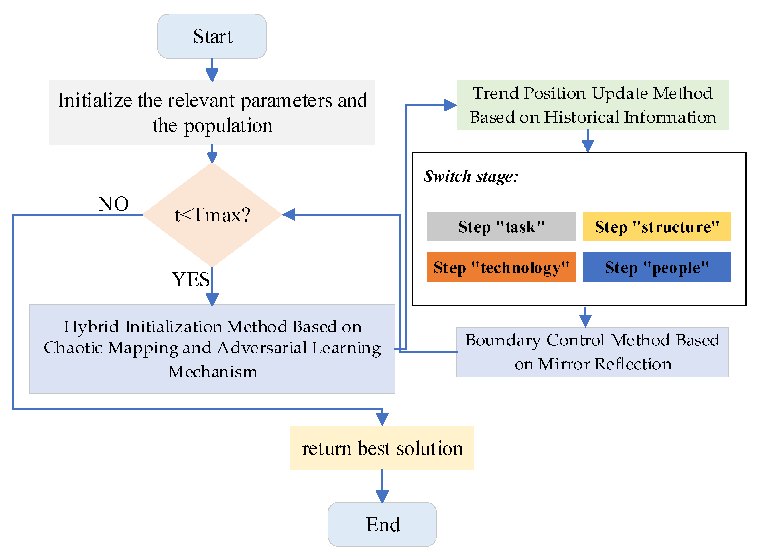We proposed a hybrid initialization method based on chaotic mapping and adversarial learning mechanisms to enhance the quality of the initial population, enabling the algorithm to better explore the solution space.
