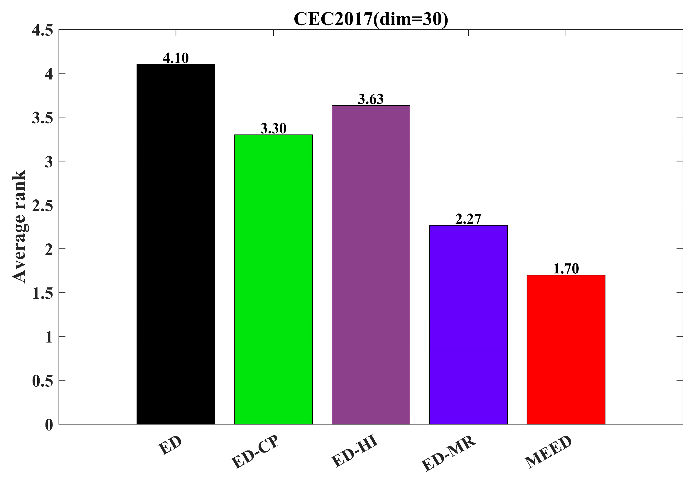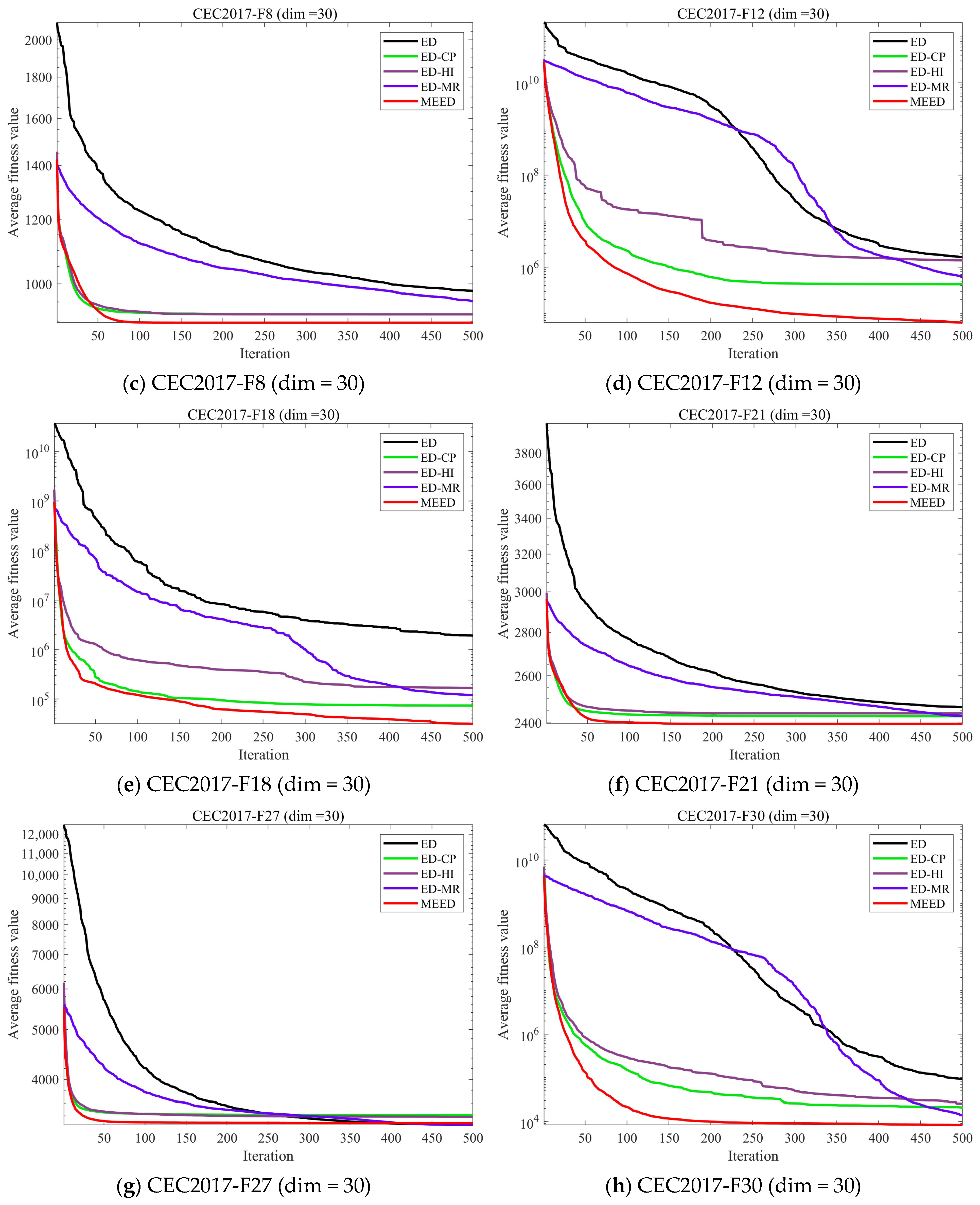 In this subsection, we evaluate MEED’s performance using CEC2017 [