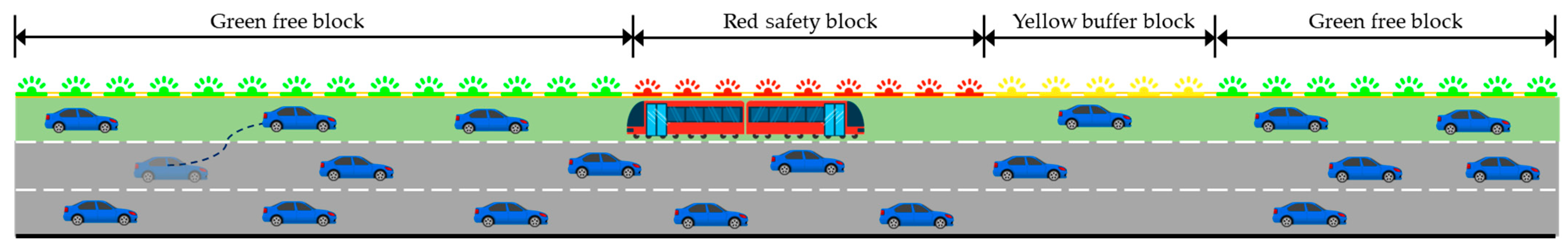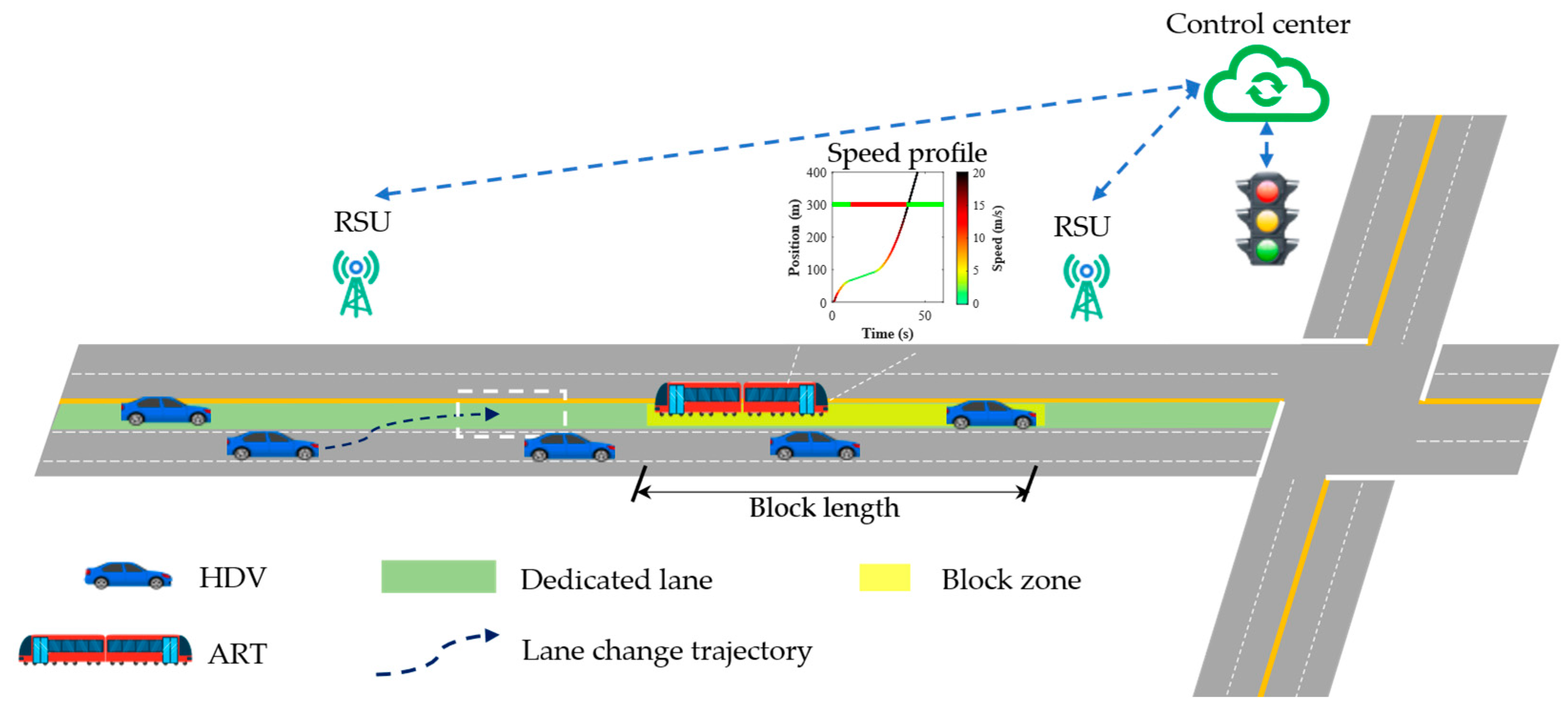 - How to update the moving-block zone for non-ART vehicles without compromising the operational efficiency of ART. In addition, signal coordination and forced lane clearance are not preferred options, as they may impose adverse effects on the overall traffic flow.