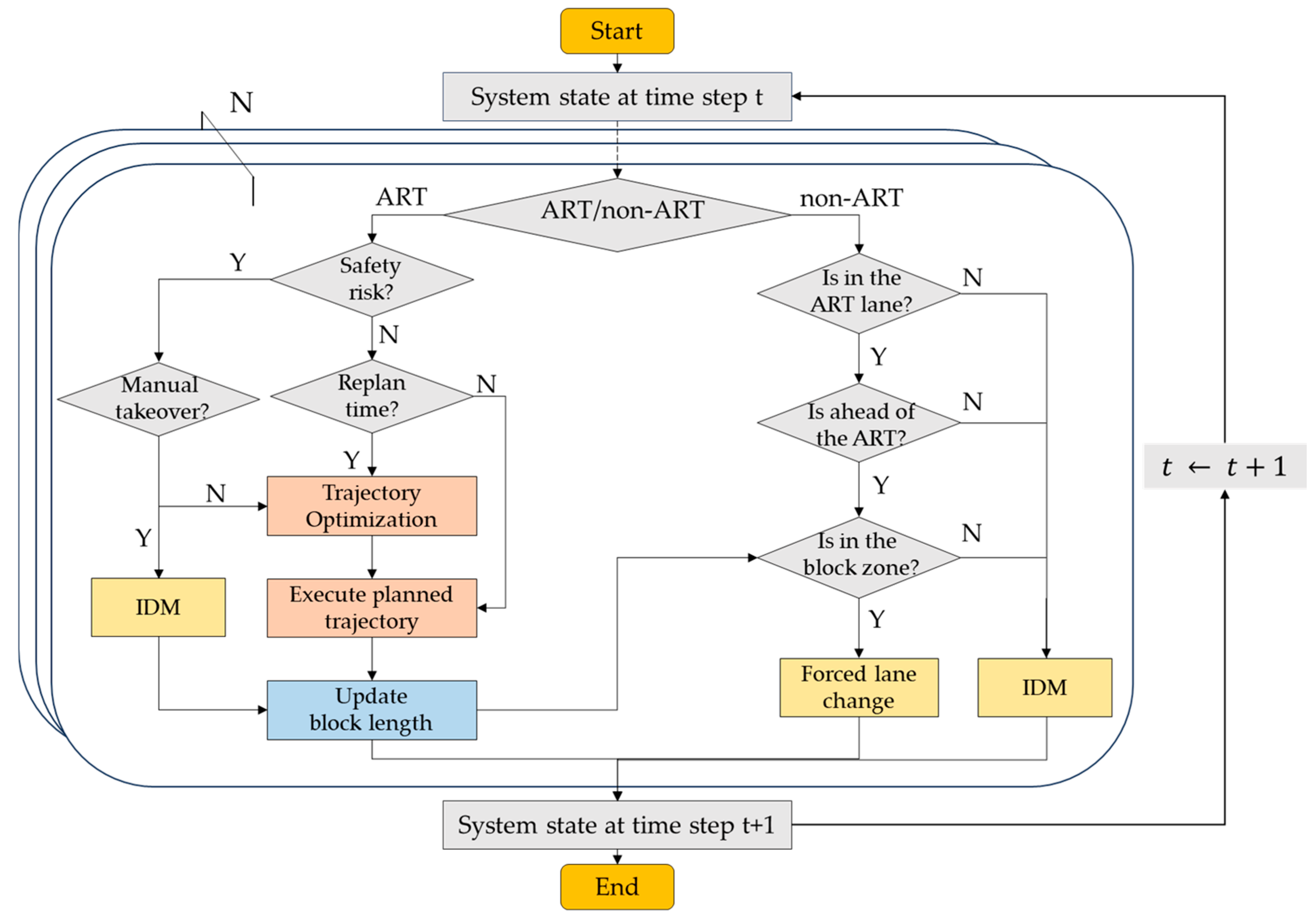 - All non-ART vehicles are assumed to be homogeneous in physical characteristics (e.g., size and dynamics), as heavy trucks are generally prohibited from operating on urban roads during daytime.