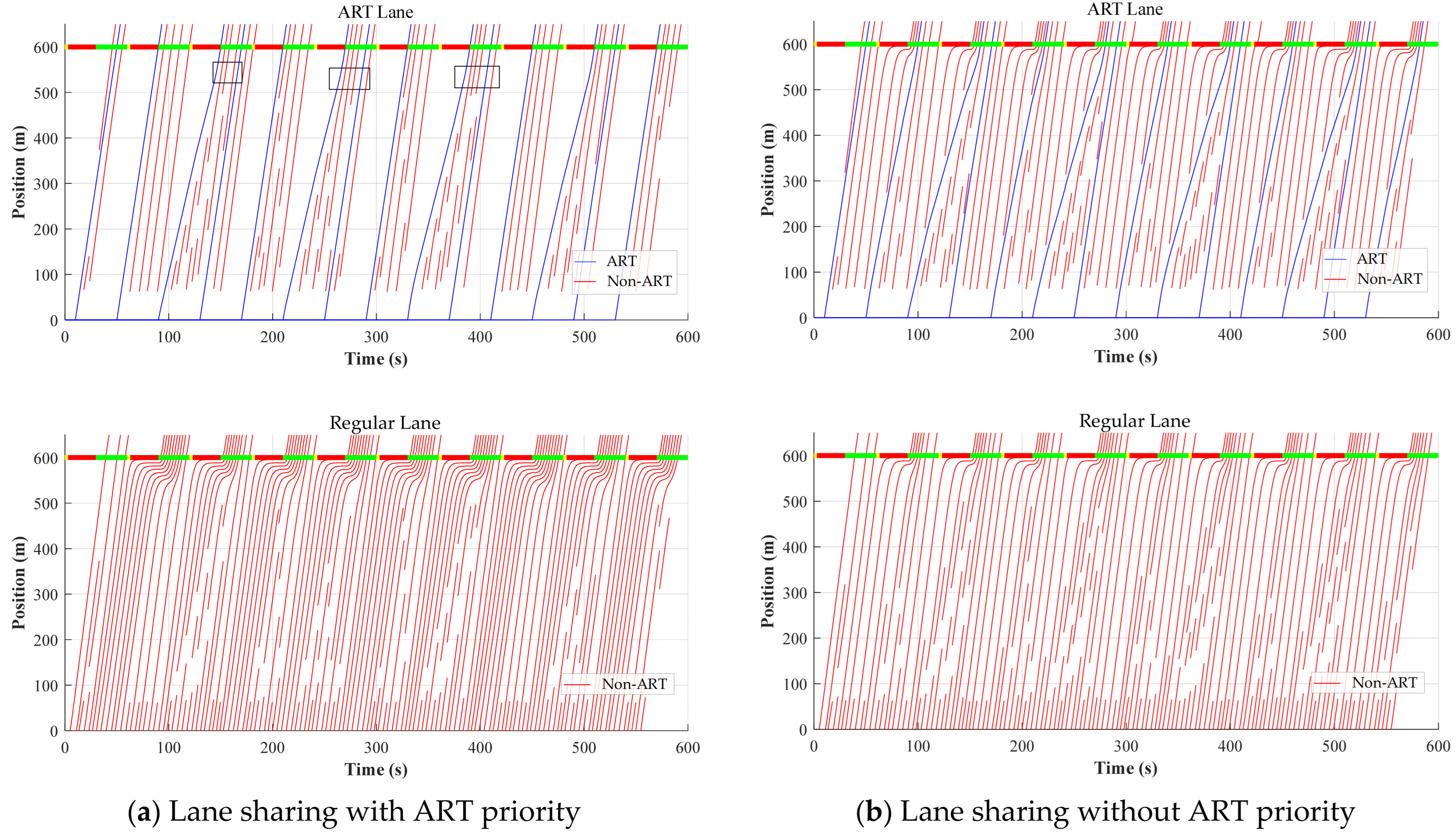 6.2. Evaluation of ART Lane-Sharing Effectiveness