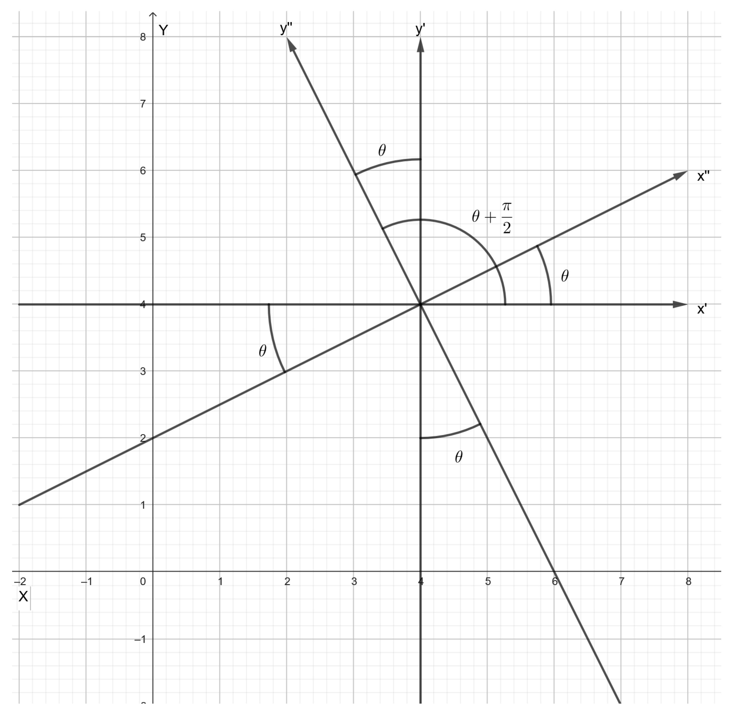 - If the equation corresponds to the -axis, then it is clear that the rotation angle of (3) is also the inclination angle of the straight line that corresponds to this axis; thus, Theorem 2 implies . On the other hand, if the coordinates of satisfy the equation in question, then . Therefore,