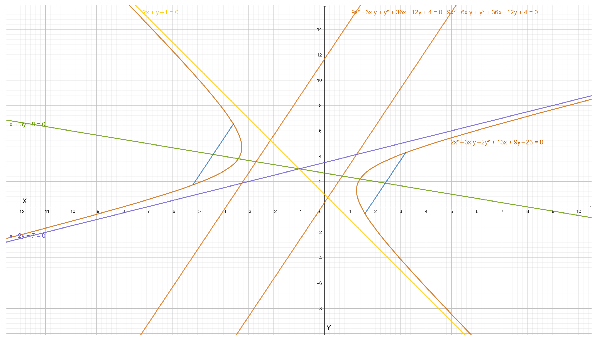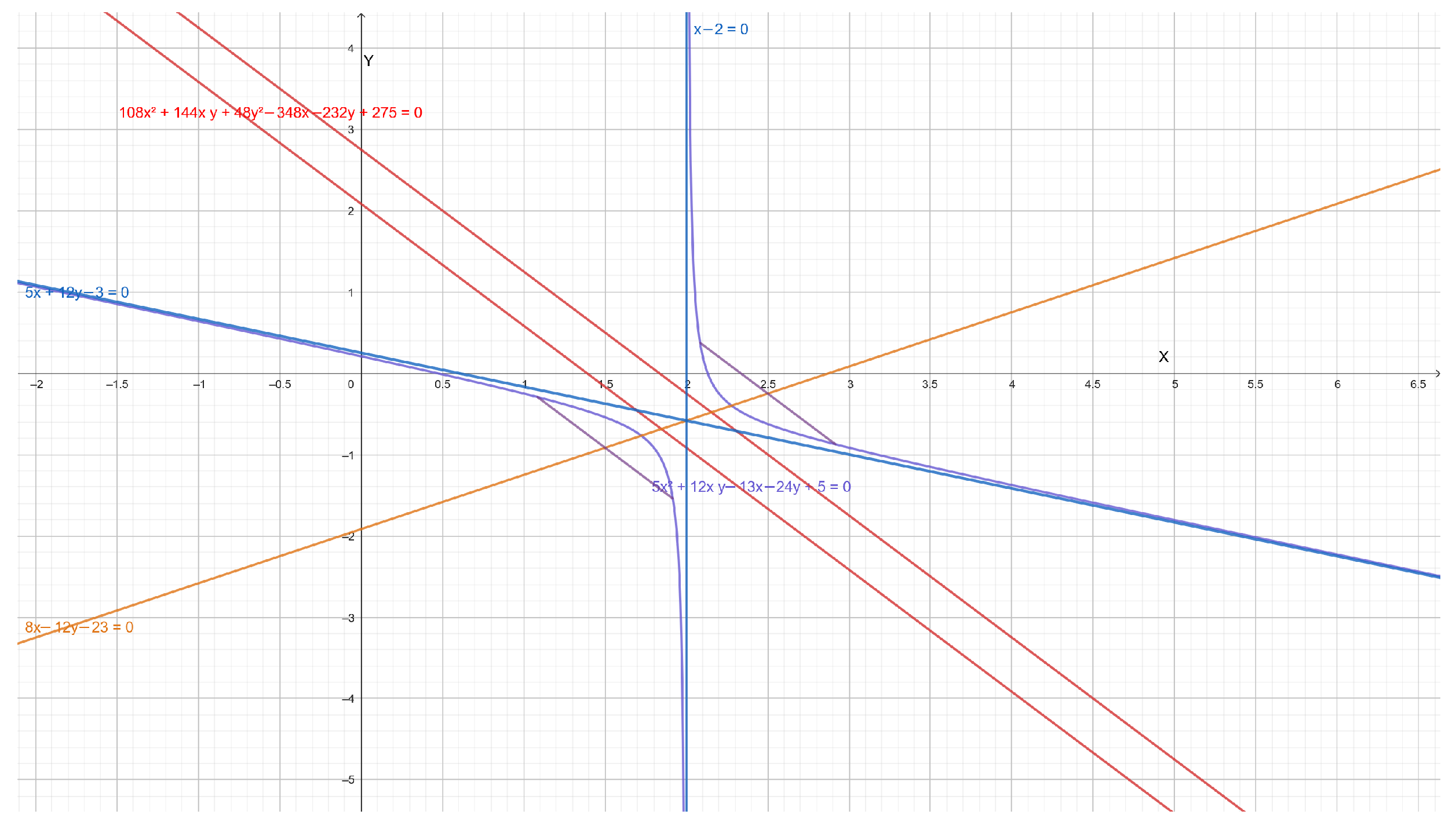 - if and only if the locus in question is a hyperbola or a couple of straight lines with different slopes.